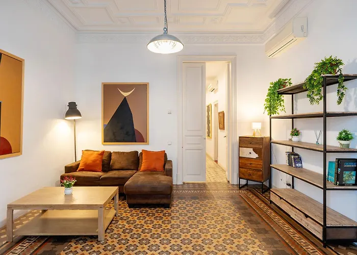 Das 90 m² große Luxury Business Apartment Gran Via - 2 Rooms - Romantic Eixample - 8Min Passeig Gracia Barcelona liegt ungefähr 17 Fußminuten vom Plaça de Catalunya entfernt sowie in unmittelbarer Nähe zu verschiedenen Sehenswürdigkeiten der Gegend.